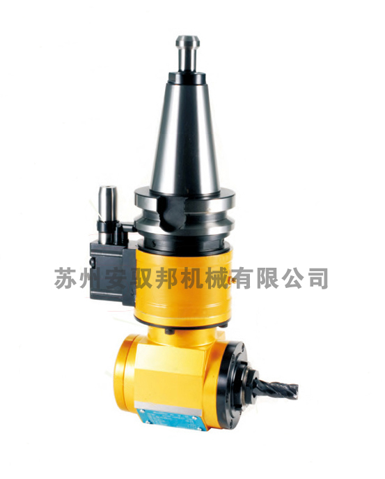 小型銑削動力頭又叫小型角度頭,輕型角度頭——此類角度頭特點為質(zhì)量輕(一般5-15kg,市場上甚至有3kg的超輕型)、精度高、扭矩偏小、可進刀庫進行自動換刀。此類角度頭用定位塊定位,輸出一般為筒夾或BT30錐柄,有時也有特殊的可以輸出CAT或HSK刀柄,也有部分特殊的直接連接絲攻或面銑刀。 它的特點是本體與角度頭可360度自由回轉(zhuǎn);內(nèi)藏式筒夾設(shè)計,剛性強;可用于ATC自動換刀;高精度,干涉;校正簡單,可用于攻螺紋、鉆孔和中輕度銑削。